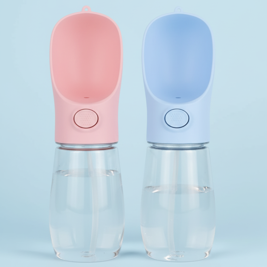 Garrafa Portátil com Bebedouro: prática e funcional, permite oferecer água ao pet em qualquer lugar, sem sujeira e sem desperdício.